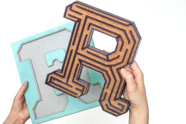 Radikal is a multi-tone, geometric typeface designed by American graphic designer Parvaneh Toghiani. Not only did she design the typeface, but she also decided to design a whole range of products around it. She designed a ball maze, coasters, stickers, and posters.